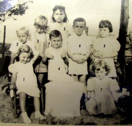 1-Gail (Gladney); 2-Paul Dixon; 3-Gerald Feaster; 4-Wayne Mixson; 5-Ruth (Pardee); 6-James Mixson; 7-?; 8-Annette (Pardee)