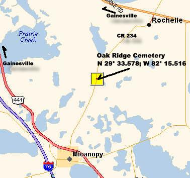 Cemetery GPS Location: N 29° 33.578; W 82° 15.516